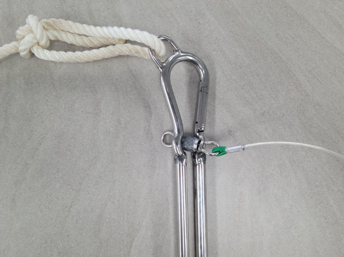 When a large animal is hooked, the FLD is attached to a heavy-gauge line and slid down the branchline until it catches on the 45-gram weight near the hook. From there, crew can put controlled pressure on the gear to straighten or remove the hook and recover as much line as possible before releasing the animal. The device also helps reduce dangerous flybacks when weights or hooks snap back toward the crew. meetings.wcpfc.int